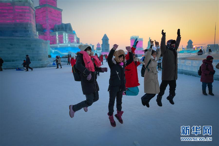 游客在哈爾濱冰雪大世界園區中游玩(1月5日攝)。新華社記者王松攝