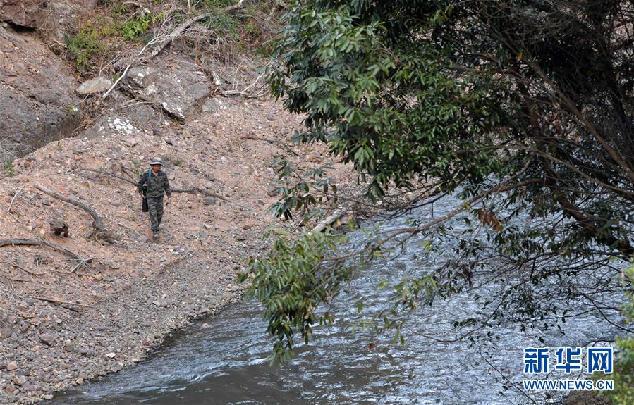 在江西九連山國家級自然保護區,陳志高帶著他的相機準備過一條小河進入密林深處拍攝鳥類(1月8日攝)。新華社記者 彭昭之 攝