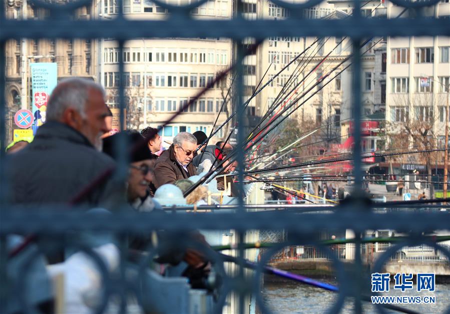 1月14日,在土耳其伊斯坦布爾,人們在海邊垂釣。 近日,土耳其最大城市伊斯坦布爾的氣溫轉暖,不少垂釣愛好者來到海邊,享受冬日的暖陽和垂釣的樂趣。 新華社記者 徐速繪 攝