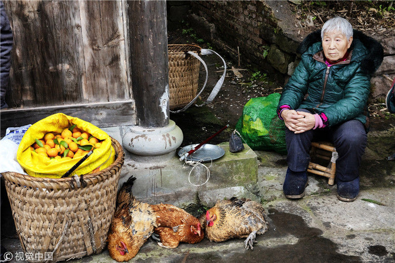 2019年1月26日,重慶中山古鎮,880桌“千米長宴”5萬人共品年味。當地趕來的村民。