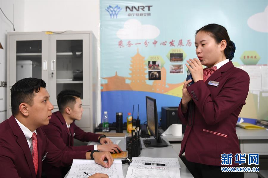 今年24歲的劉慧君是南寧軌道交通1號線上的一名列車司機,也是南寧首批地鐵女司機隊伍中的一員。雖然年齡不大,她工作至今駕駛里程已超過8萬公里。由于工作的原因,當許多人還在熟睡當中,劉慧君已進入緊張的工作狀態。填寫司機日志,進行酒精測試,領取行車物品……完成一系列準備工作后,她走進列車駕駛室開始新一輪班次的工作。
