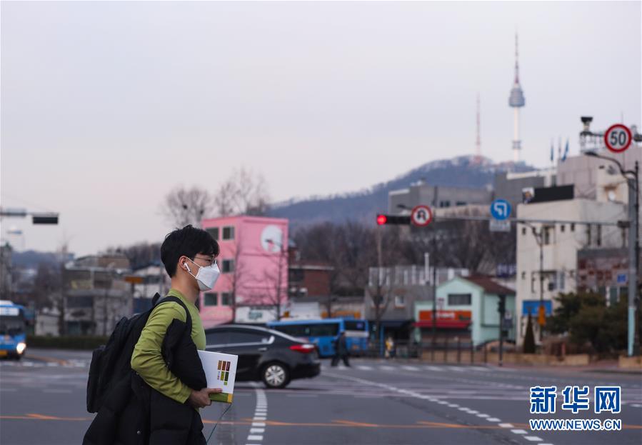 2月24日,在韓國首爾,一名男子行走在龍山區的道路上。 新華社記者 王婧嬙 攝