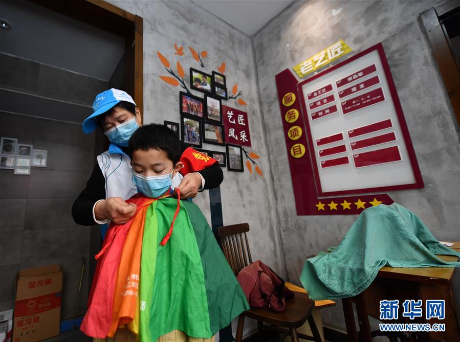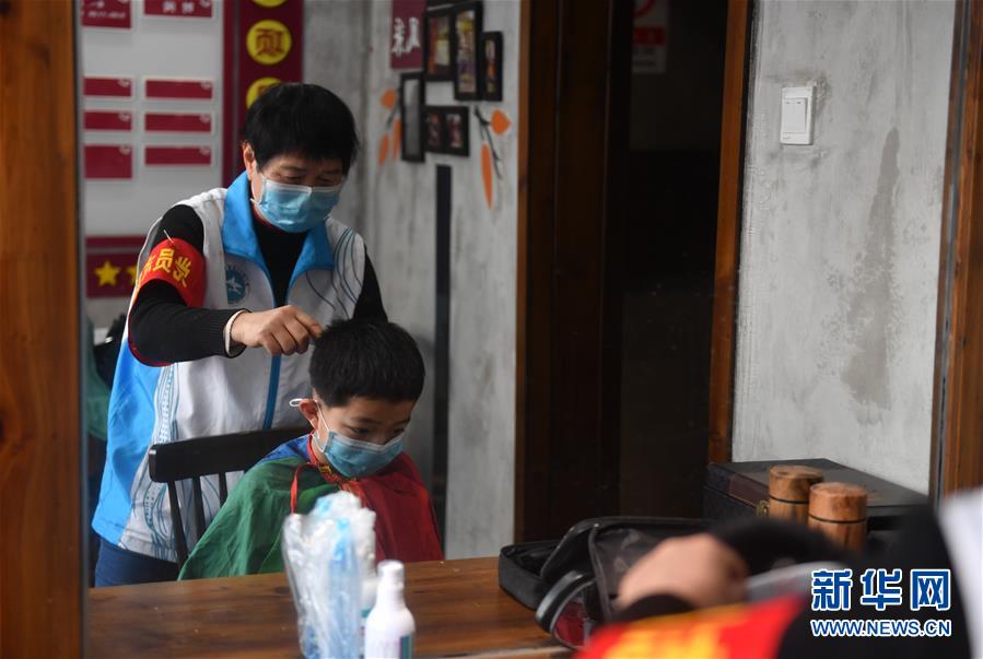 2月24日,鄒勤敏在南昌市青山湖區商苑社區服務中心為一名小朋友理發。新華社記者 胡晨歡 攝