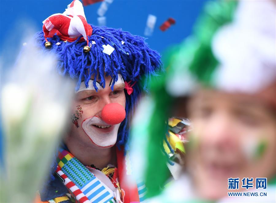 2月24日,在德國科隆,人們參加“玫瑰星期一”大游行。新華社記者 逯陽 攝