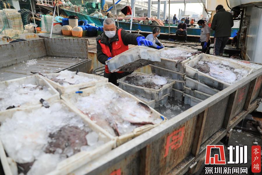 2020年2月24日,浙江舟山國際水產城碼頭,當地的工人正在剛靠岸的漁船上卸魚貨,現場十分繁忙。