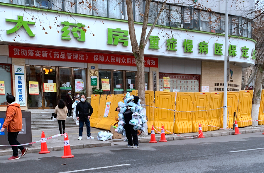 2月22日,王春波從藥店出發,給周邊小區的居民送藥。新冠肺炎疫情防控工作啟動以來,在決戰之地武漢,有一群“平民英雄”默默付出鮮為人知。他們雖不是醫護人員,但也活躍在城市抗擊疫情的各個戰線上,力所能及地幫助他人,義無反顧的堅守自己的“戰場”,為抗擊疫情加油助力。近日,記者走近這群“平民英雄”,用鏡頭記錄下他們不平凡的身影。新華社記者熊琦攝