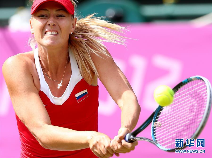 圖為2012年8月4日,莎拉波娃在倫敦奧運(yùn)會(huì)網(wǎng)球女單決賽中回球。最終,她以0比2不敵美國(guó)選手小威廉姆斯,獲得亞軍。 新華社記者陳建力攝