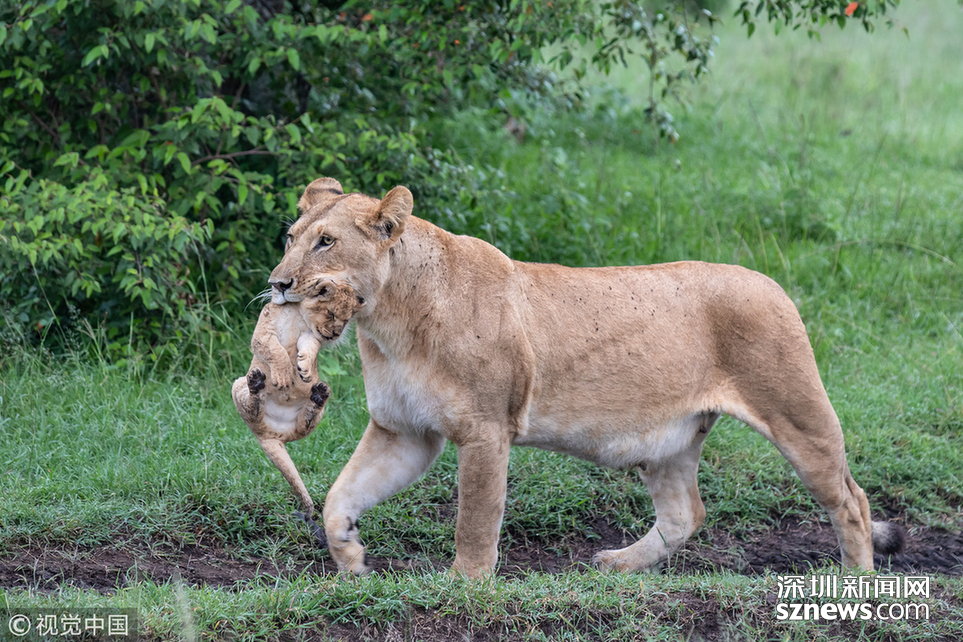 英國野生動物攝影師Paul Goldstein在肯尼亞的馬賽馬拉拍到了一頭小獅子被媽媽教訓的場面。畫面中,小獅子正歡快地在草叢穿行,任憑媽媽喚了幾次都無動于衷。為了把小獅子帶到安全地帶,母獅咬住小獅子的頸部,霸氣地將其叼在嘴巴里,小獅子一下安分起來,任由母獅帶著活動。Paul說:“把人類的情感和表達方式加給動物是不對的,但毫無疑問,這位母親對小獅子的調皮很不滿意。它喚了幾次,幼崽都拒絕服從它的命令。這個地方前一晚下了雨,母獅一天的大部分時間都會盯緊自己的孩子,避免它們遭遇危險,而一直呆在潮濕的灌木叢中,又是這些小家伙不喜歡的。最終,母獅走向小獅子,直接叼起來放回了灌木叢里。”