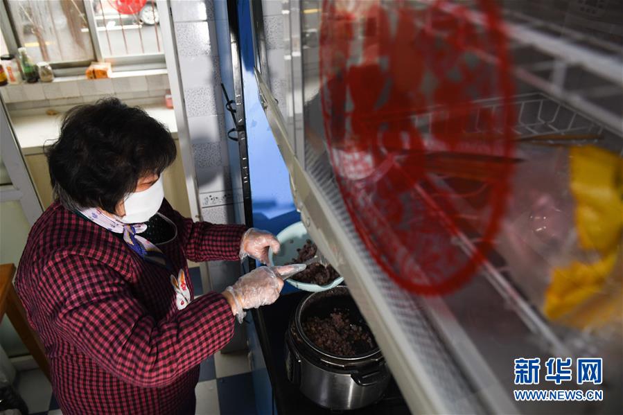 2月28日,張蘭英在合肥市奧林花園社區的家中做粥,準備送給疫情防控人員。新華社記者張端攝