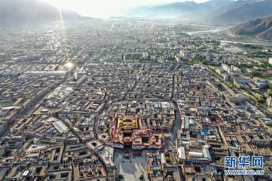 鳥瞰拉薩古城(8月10日無人機拍攝)。新華社記者普布扎西攝