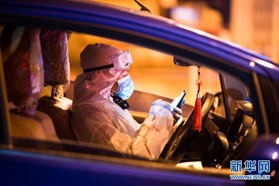 2月29日凌晨,王震在車內查看出車信息。新華社記者 肖藝九 攝