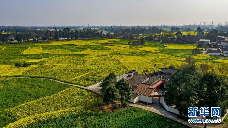 2月25日在四川省崇州市拍攝的油菜花田(無(wú)人機(jī)照片)。新華社記者王曦?cái)z