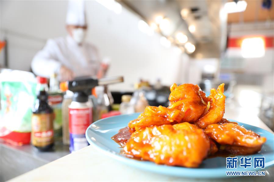 3月4日,職教城內的鞍山市現代服務學校的李崇老師為學生進行遼菜烹飪實訓網絡授課,旁邊擺放著他剛剛做好的鍋包肉。遼寧省鞍山市職教城內的各類職業教育學校從3月2日恢復網絡授課以來,教師們設置了豐富多彩的課程,提高1萬余名學生線上學習的積極性。新華社記者 姚劍鋒 攝