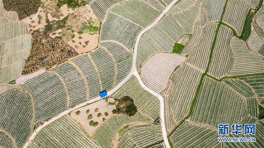 3月8日,貴州省羅甸縣龍坪鎮(zhèn)羅化村村民在田地里勞作(無人機照片)。新華社記者 陶亮 攝