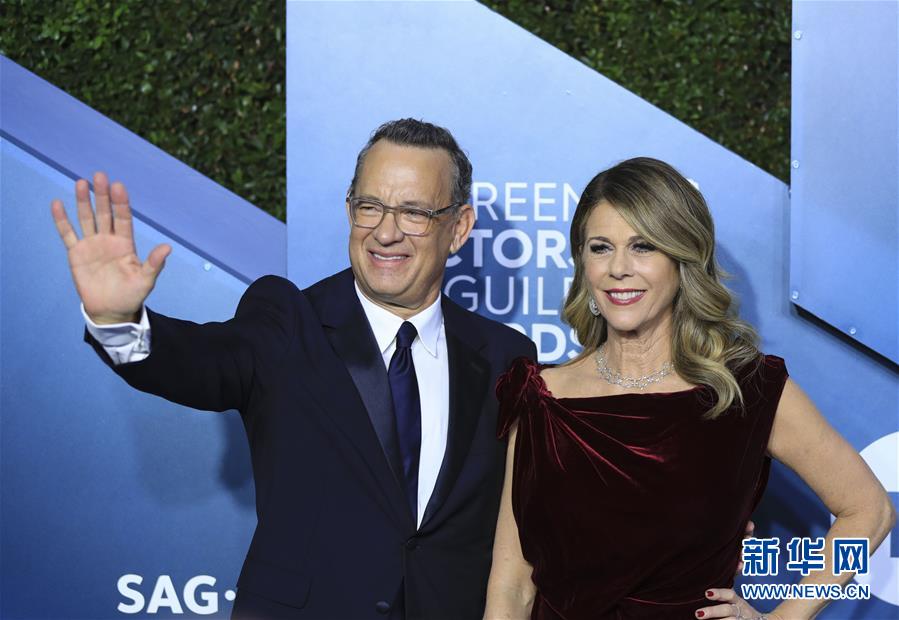 這是1月19日美國影星湯姆·漢克斯與妻子在美國洛杉磯亮相第26屆美國影視演員協(xié)會(huì)獎(jiǎng)紅毯時(shí)的資料照片。