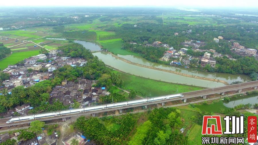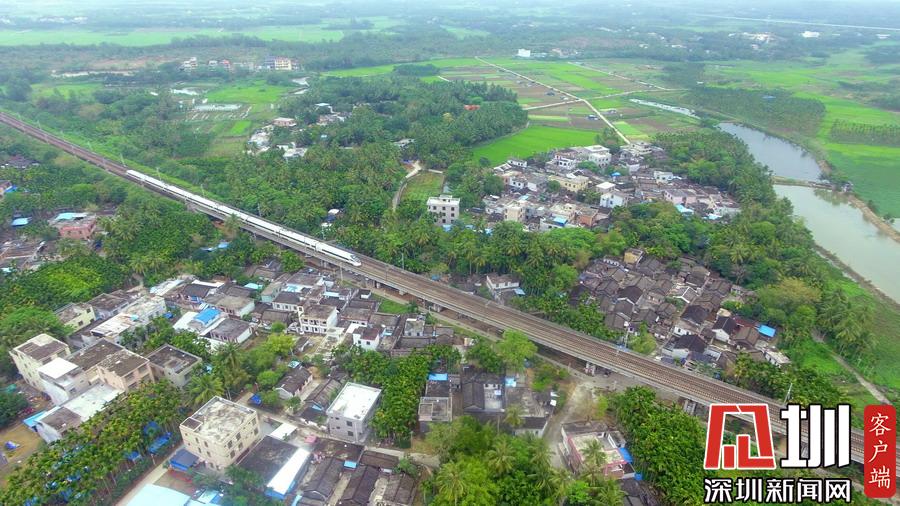 2020年3月17日,海南環(huán)島鐵路一列動(dòng)車(chē)從春光明媚的瓊海城區(qū)經(jīng)過(guò)。