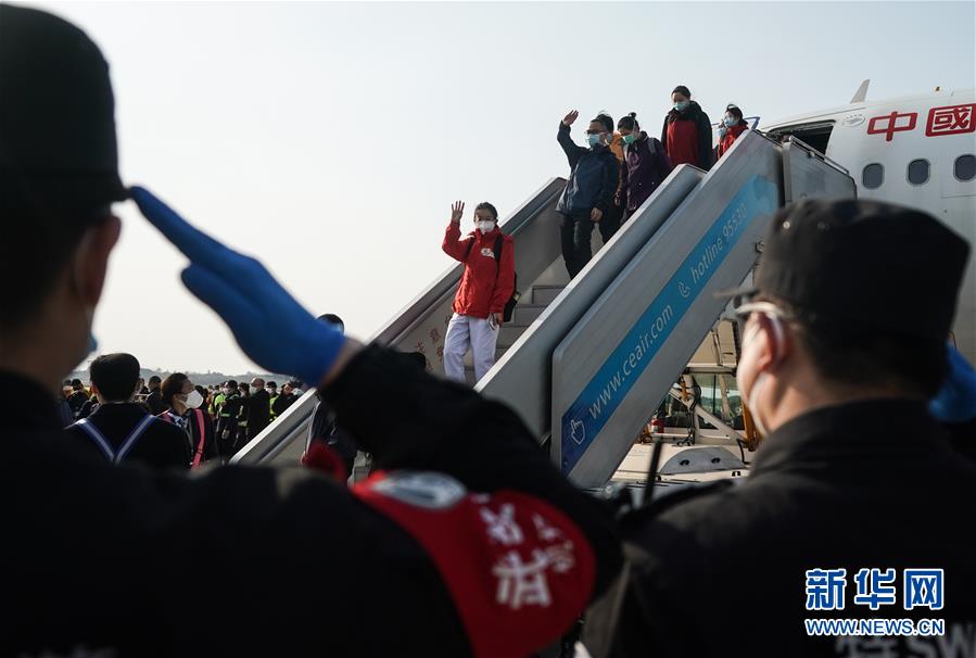 3月17日,醫療隊隊員抵達江蘇南京祿口國際機場。新華社記者季春鵬攝