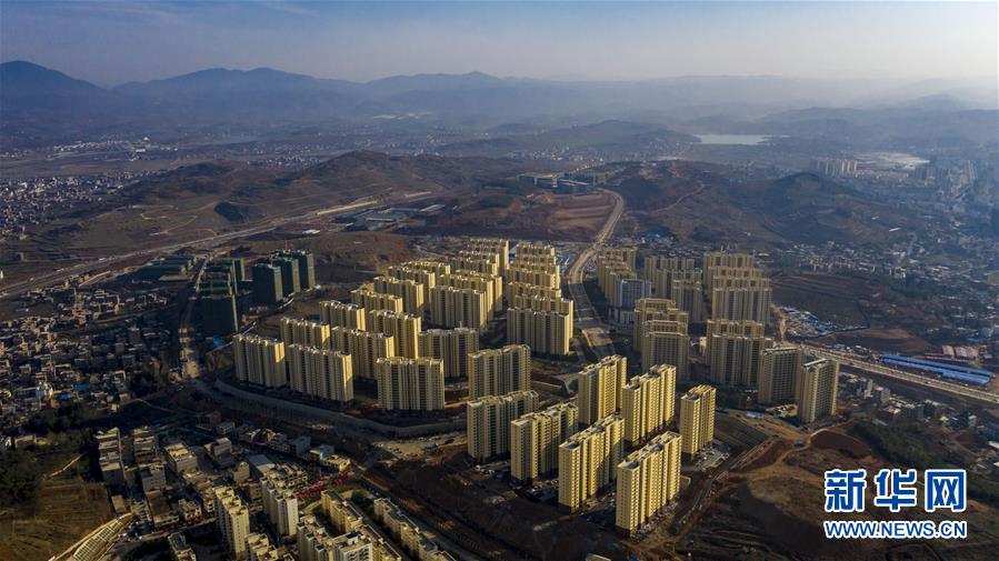 位于云南省魯甸縣的卯家灣易地扶貧安置區(3月15日攝,無人機照片)。 新華社記者 江文耀 攝