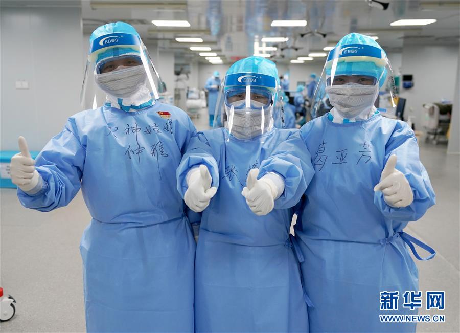 80后護士與90后護士合影(3月20日攝)。 武漢火神山醫院重癥醫學一科的護理團隊共50名護士,其中絕大多數是80后、90后女性,她們不懼危險,奮戰在抗擊疫情的最前沿“紅區”。 新華社記者王毓國攝