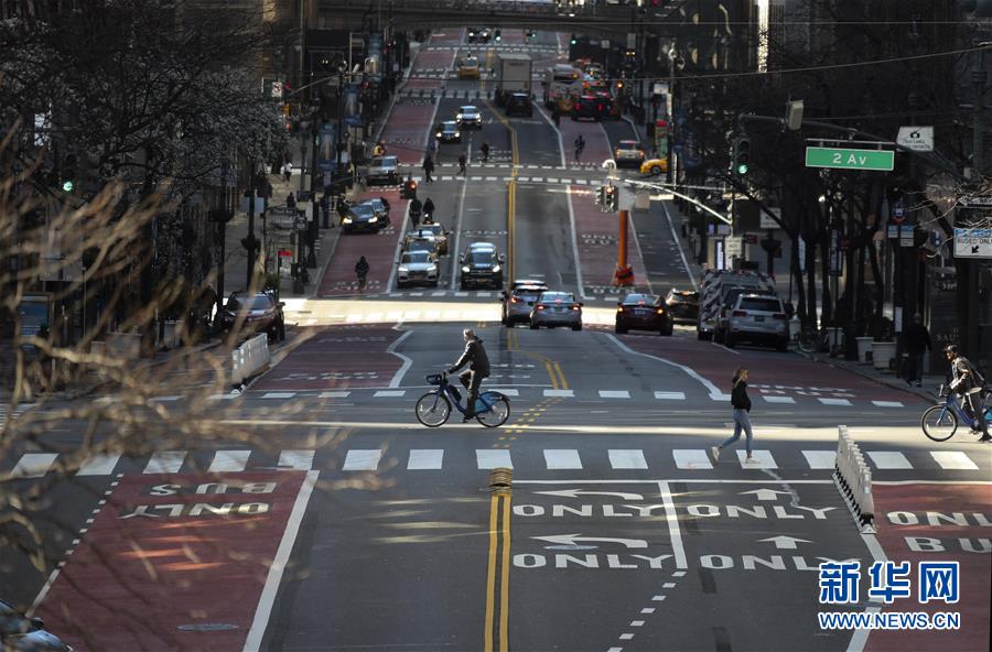 3月21日,在美國紐約,以往繁忙的街道上車輛寥寥。美國紐約州、伊利諾伊州、康涅狄格州20日發布針對本州居民的“居家令”,以遏制新冠病毒傳播。這些“居家令”涵蓋紐約、洛杉磯、芝加哥等大城市,影響數千萬人。白宮20日發表聲明說,總統特朗普已宣布紐約州出現“重大災難”,命令聯邦政府支援該州抗擊新冠肺炎疫情。新華社記者王迎攝