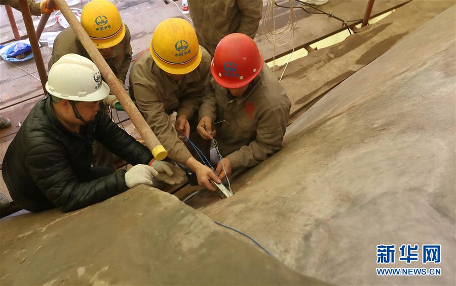 中鐵西北科學(xué)研究院有限公司文保中心的工作人員將勘測探頭放入大佛巖體內(nèi)(3月17日攝)。