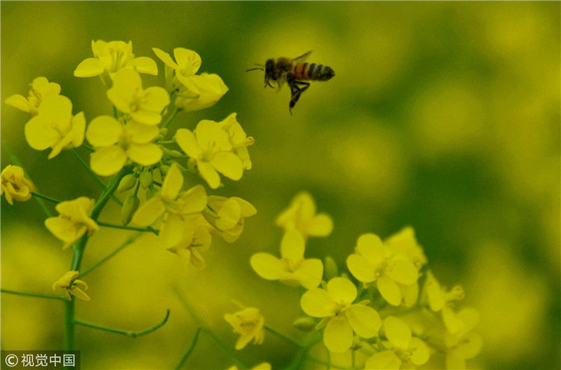 2019年2月5日,廣西來賓,當天是農歷大年初一,人們在忻城縣城關鎮隆光村油菜花海中賞花游玩。