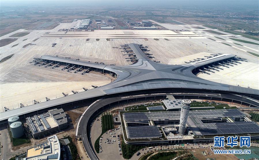 2019年6月12日無人機拍攝的建設中的青島膠東國際機場。新華社記者李紫恒攝