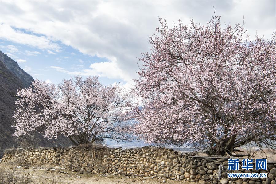 這是3月26日拍攝的西藏林芝市波密縣境內桃花盛開的田園風光。新華社記者 孫非 攝