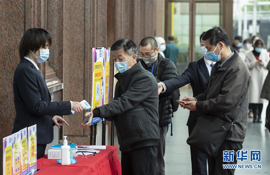 3月30日,在武商世貿(mào)廣場,工作人員在為顧客測量體溫。當(dāng)日,武漢市多家商場開門迎客。新華社記者費(fèi)茂華攝