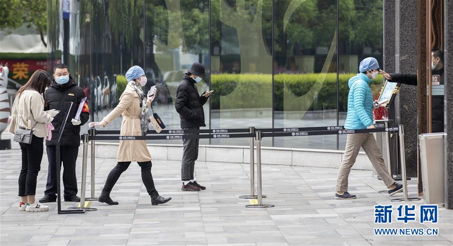 3月30日,顧客排隊(duì)進(jìn)入武商國際廣場。當(dāng)日,武漢市多家商場開門迎客。新華社記者費(fèi)茂華攝
