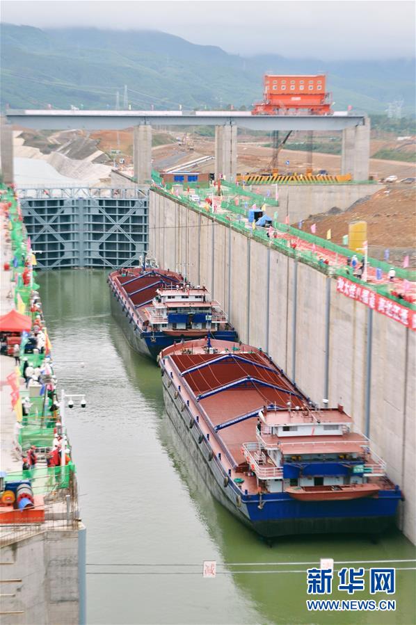 3月31日,船只停靠在大藤峽水利樞紐工程船閘閘室。新華社記者崔博文攝