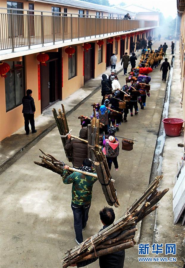 廣西融水苗族自治縣四榮鄉榮地村的侗族村民在喬遷新居(2018年1月26日攝)。新華社記者張愛林攝
