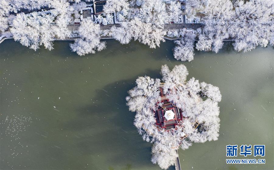 4月5日拍攝的拉薩宗角祿康公園雪景(無人機照片)。新華社記者普布扎西攝
