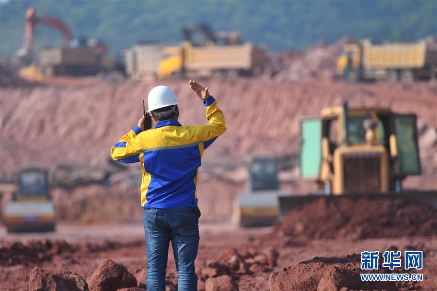 普洱車站施工現(xiàn)場(chǎng),中鐵八局的工人在指揮壓路機(jī)碾壓路面(4月12日攝)。新華社記者秦晴攝