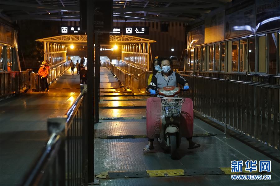 4月22日,市民騎電動車乘坐武漢長江客運輪渡出行。為建立與經濟社會發展和疫情防控需要相適應的運輸服務保障機制,保障市民出行需求,從4月22日起,武漢城市公共交通有序恢復全線網運營。新華社記者沈伯韓攝