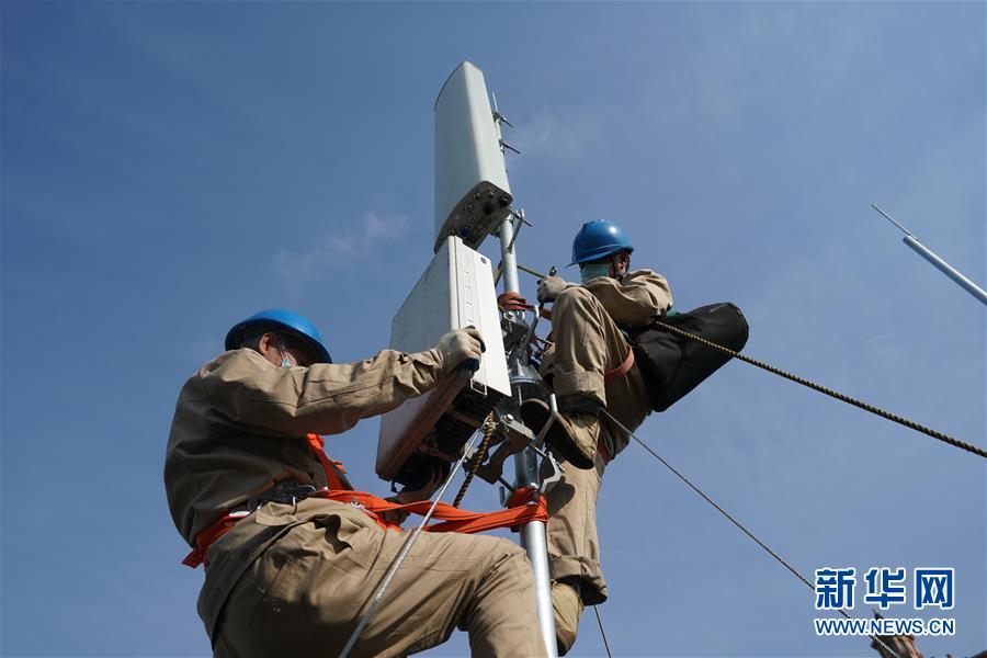 4月25日,在南京220千伏城南河變電站屋頂,工人在架設5G設備。當日,三大通信運營商的2座5G、3座4G基站建設工作在南京220千伏城南河變電站屋頂有序展開。在變電站內建設基站可有效利用電網資源,縮短建設周期,節約建設成本。新華社記者季春鵬攝