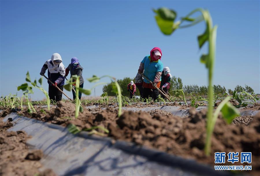 4月25日,灤南縣東黃坨鎮新戶村農民給栽植好的煙薯秧苗培土。近年來,河北省灤南縣利用當地土壤和氣候特點,引導農民因地制宜發展煙薯種植,取得良好效果。目前該縣煙薯種植面積達3萬多畝,每畝年收入達5000多元。新華社記者楊世堯攝