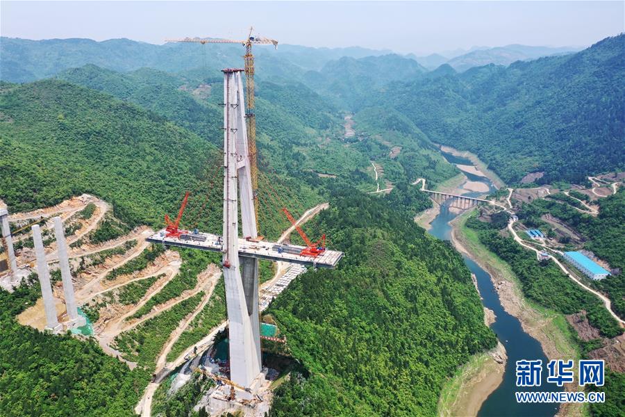 這是建設中的遵余高速湘江大橋(4月26日攝,無人機照片)。近日,由中鐵廣州局承建的貴州遵余高速湘江大橋工程在做好疫情防控的同時,全力恢復生產建設。目前工程進展順利,正在進行主橋鋼梁架設,預計將于8月底合龍。據了解,遵余高速湘江大橋橋梁全長1700余米,主跨560米。新華社記者劉續攝