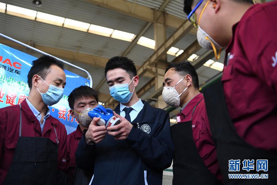 4月27日,常青街道凌大塘社區邀請專業人員到轄區企業車間為工人講解防護設備的使用方法。當日,安徽省合肥市包河區常青街道開展健康講座、職業病防護宣傳等系列活動,提高勞動者的自我防護意識和能力,迎接“五一”國際勞動節。新華社記者劉軍喜攝