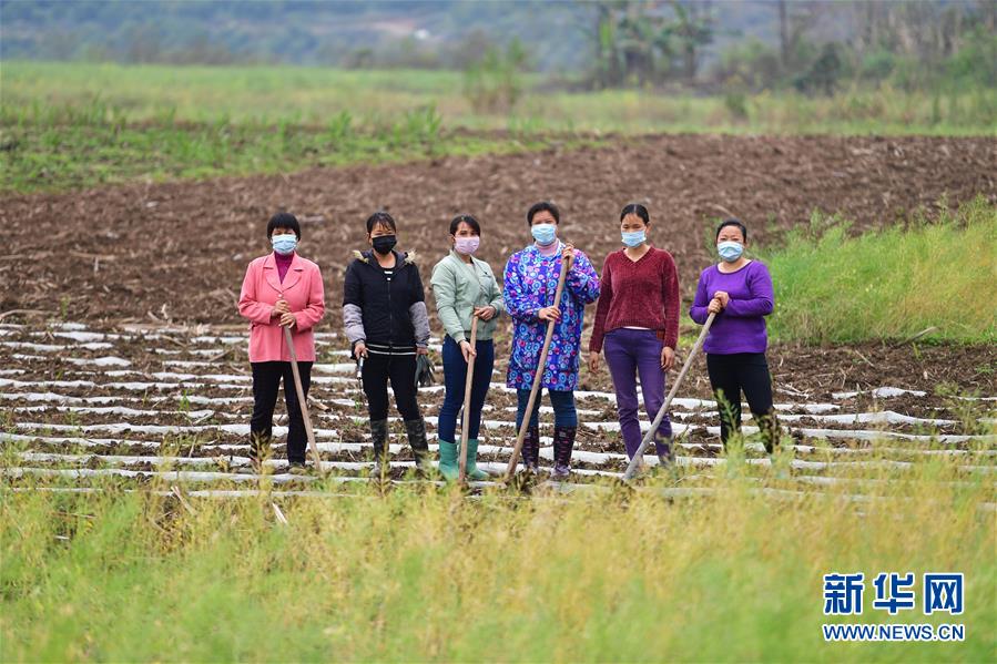 在廣西融水苗族自治縣永樂鎮毛潭村,38歲的歐意鳳(右三)和返鄉發展產業的婦女們(3月13日攝)。