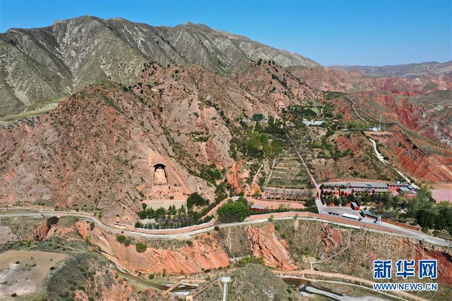 這是4月27日拍攝的寧夏須彌山石窟景觀(無人機(jī)照片)。新華社記者王鵬攝