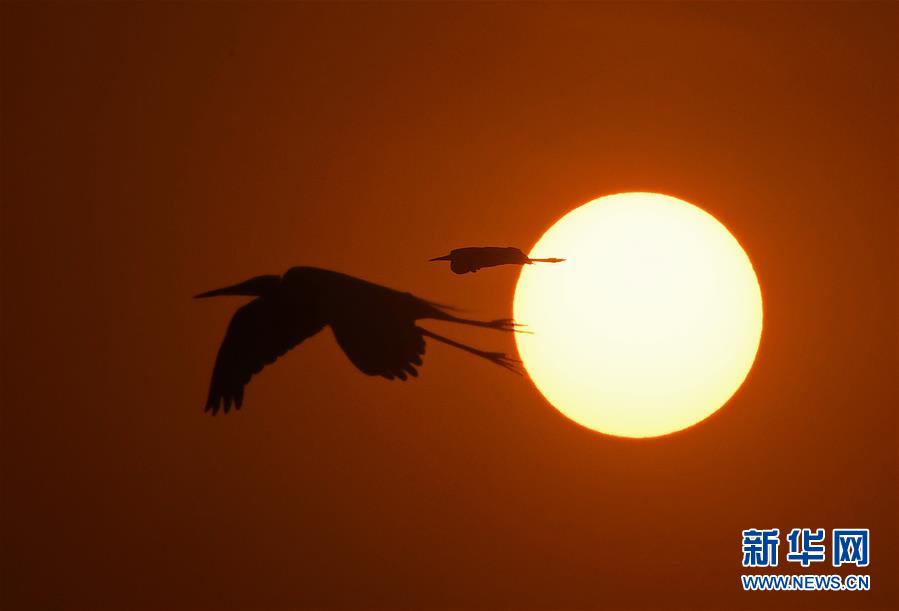 白鷺在位于鄱陽湖畔的南昌市象山森林公園上空飛翔(4月27日攝)。近日,在江西省南昌市新建區象山森林公園內,已安家筑巢的大批白鷺進入繁殖旺季。在夕陽的照耀下,白鷺時而翩翩起舞,時而展翅盤旋,構成一幅美麗的自然生態畫卷。新華社記者萬象攝