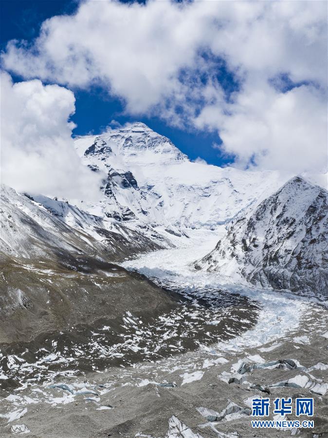 位于珠穆朗瑪峰腳下海拔5400米左右的中絨布冰川(4月30日攝,無人機照片)。位于珠穆朗瑪峰腳下海拔5400米左右的中絨布冰川,巍峨壯觀,冰塔林托起世界最高峰,讓人嘆為觀止。新華社記者普布扎西攝