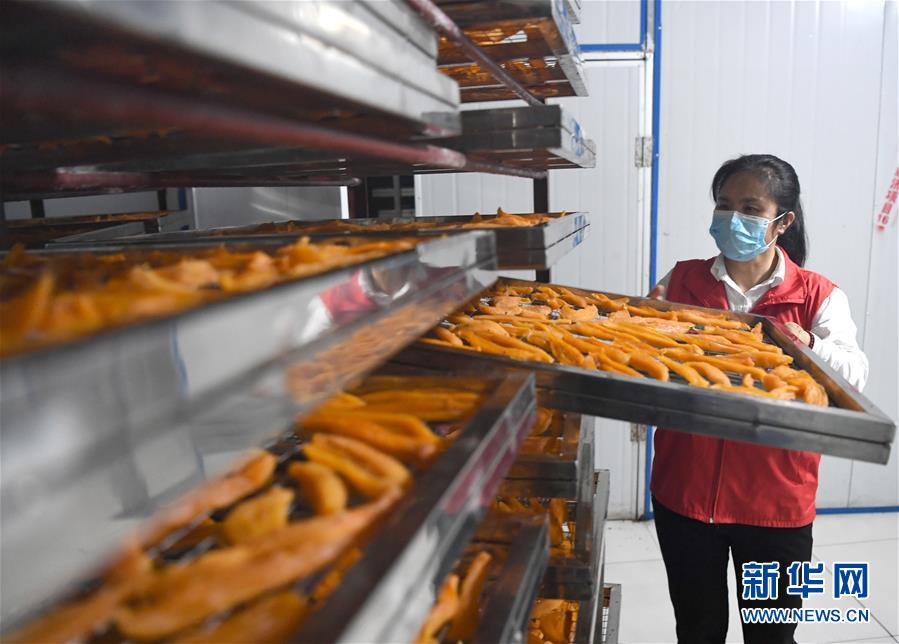 唐莉在平樂縣張家鎮老埠村合作社查看紅薯干生產情況(5月4日攝)。新華社記者周華攝