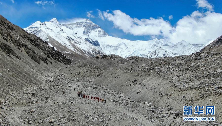 5月6日,登山隊員們離開珠峰大本營,向更高海拔進發。新華社記者普布扎西攝