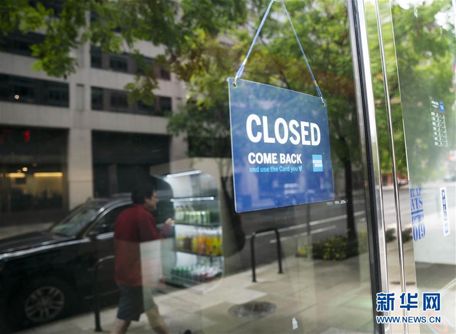 5月6日,在美國首都華盛頓,一家商場因新冠疫情暫時關閉。美國自動數據處理公司(ADP)6日公布的數據顯示,由于新冠疫情沖擊美國經濟和企業,4月美國私營部門大幅削減約2023.6萬個就業崗位。新華社記者劉杰攝