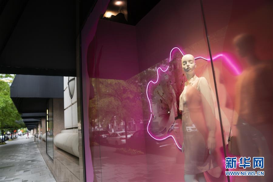 5月6日,在美國首都華盛頓,一家時裝店因新冠疫情暫時關閉。美國自動數據處理公司(ADP)6日公布的數據顯示,由于新冠疫情沖擊美國經濟和企業,4月美國私營部門大幅削減約2023.6萬個就業崗位。新華社記者劉杰攝