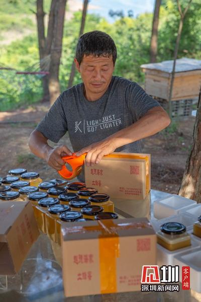2020年5月3日,湖北省襄陽市,在南漳三道河水庫小島上,小島養蜂人趙德海正在打包蜜蜂,準備發貨。