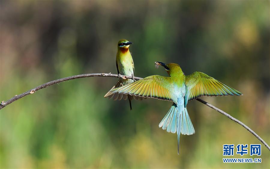 在??谖逶春酉掠畏浠⒈Wo小區,栗喉蜂虎在覓食(5月7日攝)。新華社記者楊冠宇攝