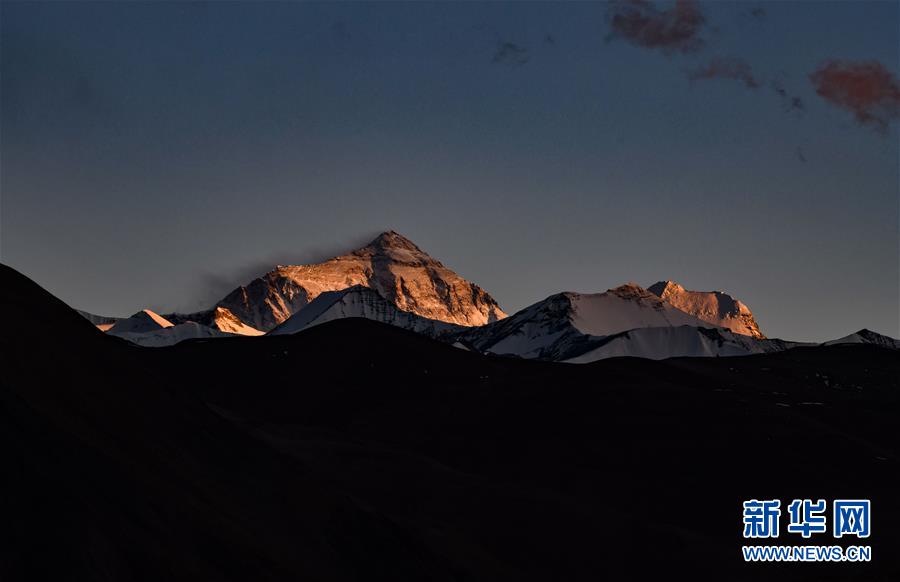 這是4月22日拍攝的夕陽(yáng)下的珠峰。世界第一高峰珠穆朗瑪峰終年積雪,頂峰云霧繚繞,美不勝收。新華社記者晉美多吉攝